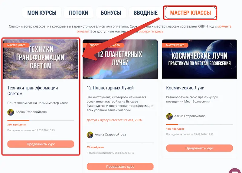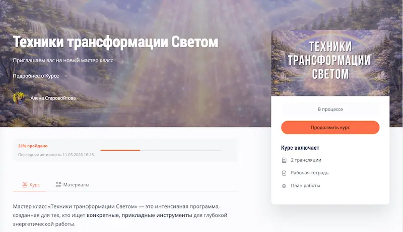 В марте 2026 года мы записали новый мастер класс “Техники трансформации Светом”. Раньше этот материал входил только в состав продвинутого курса «Практикум по Местам Вознесения».