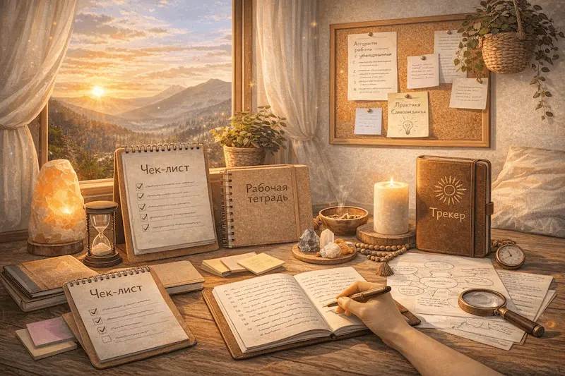 На курсе вы не просто анализируете себя. Вы выполняете письменные задания, ведете наблюдение за мыслями и состояниями, работаете с триггерами и осваиваете техники трансформации, которые помогают постепенно уменьшать внутреннюю критику и формировать более принимающее отношение к себе.