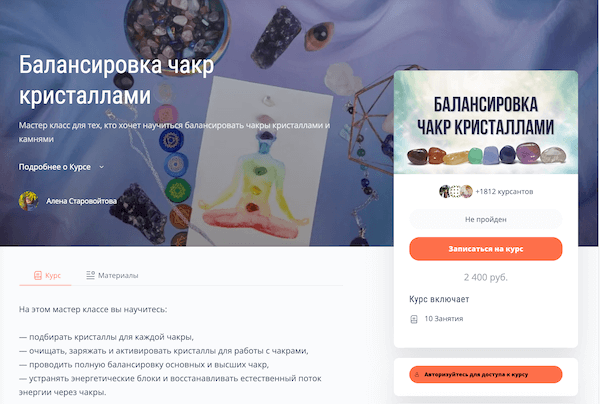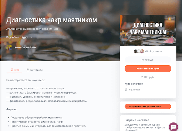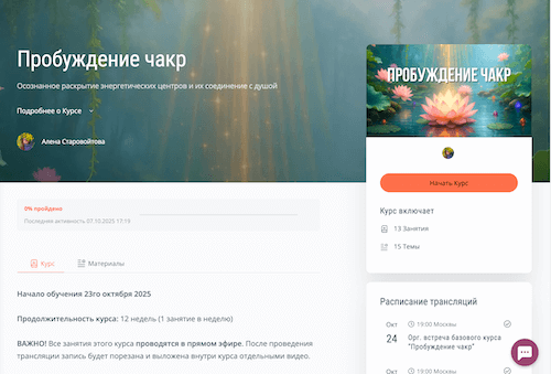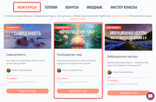 4. В разделе “Платные курсы/потоки” откроется ссылка на материалы курса «Пробуждение чакр».