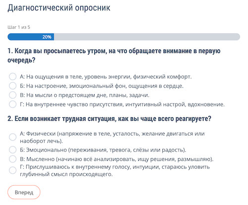 Опросники позволяют выявить ваши индивидуальные особенности — это отправная точка для осознанной работы с энергией, телом, эмоциями и умом.